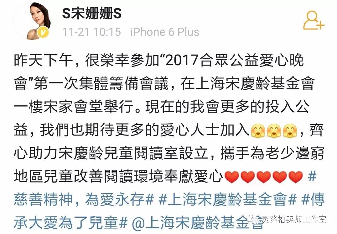 本场慈善拍卖师灵锋这样说到:“1946年宋庆龄,在上海晋元小学为贫困而无钱读书的儿童设立的儿童阅读室。时隔71后,'宋庆龄儿童阅读室'的再度启航!我很荣幸,与200位嘉宾,一起为孩子们筑梦。”